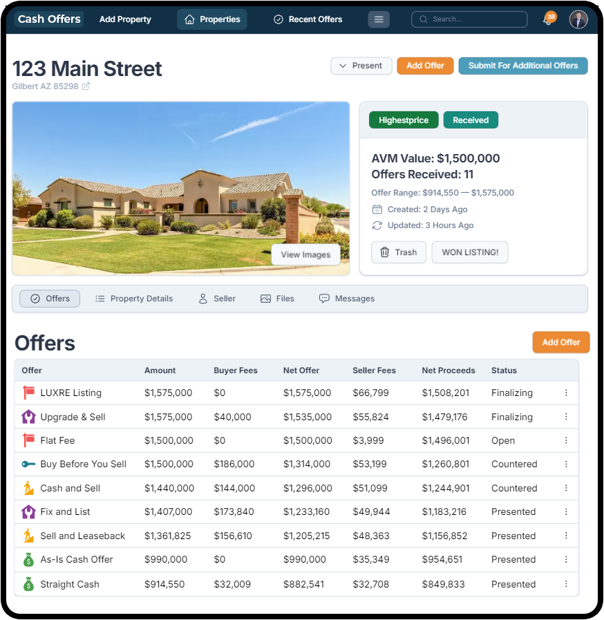 Generate cash offers for your clients without the need for a listing agreement. Provide them with instant options, whether they’re looking to sell fast or explore alternatives to traditional listings.